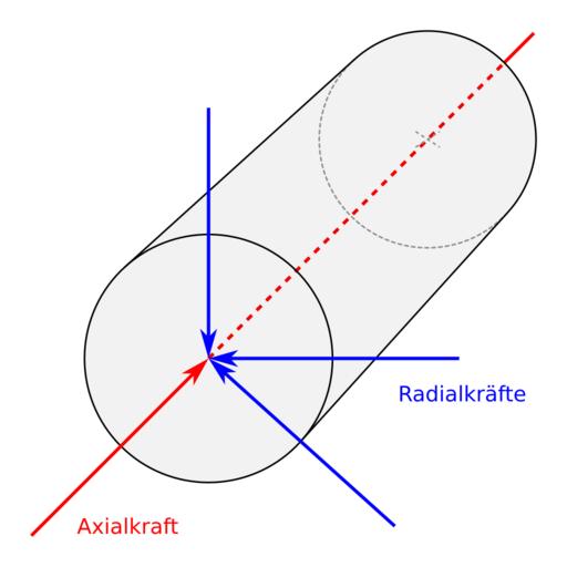 Keywords: Radial- und Axialkräfte.svg de Skizze von Axial- und Radialkräften an einem Rotationskörper own Rohieb 2016-05-09 Based on File Achsial-und Radialkräfte Skizze png Cc-zero Mechanics