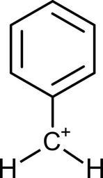 Keywords: Radical benzil.svg chemical structure of benzylic carbocation made using BKchem own 2007-01-21 User Bryan Derksen Benzyl ion