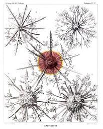| Keywords: Radiolaria (Challenger) Plate 027.jpg follows <table> <tr> <td style text-align center; vertical-align top; colspan 3 >Plate 27 Astrosphærida </td> </tr> <tr> <td style font-size 85 ; text-align right; vertical-align top; colspan 3 >Diam </td> </tr> <tr> <td style vertical-align top; >Fig 1 Cladococcus pinetum n sp </td> <td style vertical-align bottom; >×</td> <td style text-align right; vertical-align bottom; >300</td> </tr> <tr> <td style vertical-align top; >Fig 2 Cladococcus scoparius n sp </td> <td style vertical-align bottom; >×</td> <td style text-align right; vertical-align bottom; >300</td> </tr> <tr> <td style vertical-align top; >Fig 3 Cladococcus abietinus n sp </td> <td style vertical-align bottom; >×</td> <td style text-align right; vertical-align bottom; >300</td> </tr> <tr> <td style font-size 85 ; padding-left 3em; text-indent -1em; vertical-align top; >The central capsule enclosed originally in the shell sends out numerous club-shaped apophyses through the pores of the lattice-sphere The central spherical nucleus fills up half the shell-cavity </td> </tr> <tr> <td style vertical-align top; >Fig 4 Cladococcus stalactites n sp </td> <td style vertical-align bottom; >×</td> <td style text-align right; vertical-align bottom; >300</td> </tr> <tr> <td style vertical-align top; >Fig 5 Cladococcus dendrites n sp </td> <td style vertical-align bottom; >×</td> <td style text-align right; vertical-align bottom; >200</td> </tr> </table> https //archive org/details/reportonradiolar00haecrich 1887 Ernst Haeckel 1834-1919 ; engravings by Adolf Giltsch 1852-1911 PD-old-auto-1923 1919 Report on the Radiolaria |