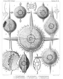 | Keywords: Radiolaria (Challenger) Plate 031.jpg follows <table> <tr> <td style text-align center; vertical-align top; colspan 3 >Plate 31 Cenodiscida et Phacodiscida </td> </tr> <tr> <td style font-size 85 ; text-align right; vertical-align top; colspan 3 >Diam </td> </tr> <tr> <td style vertical-align top; >Fig 1 Sethostaurus orthostaurus n sp </td> <td style vertical-align bottom; >×</td> <td style text-align right; vertical-align bottom; >300</td> </tr> <tr> <td style vertical-align top; >Fig 2 Sethostaurus orthostaurus n sp </td> <td style vertical-align bottom; >×</td> <td style text-align right; vertical-align bottom; >300</td> </tr> <tr> <td style font-size 85 ; padding-left 3em; text-indent -1em; vertical-align top; >Vertical section through the centrum </td> </tr> <tr> <td style vertical-align top; >Fig 3 Sethostaurus recurvatus n sp </td> <td style vertical-align bottom; >×</td> <td style text-align right; vertical-align bottom; >100</td> </tr> <tr> <td style font-size 85 ; padding-left 3em; text-indent -1em; vertical-align top; >Optical section through the equatorial plane </td> </tr> <tr> <td style vertical-align top; >Fig 4 Sethostaurus rhombostaurus n sp </td> <td style vertical-align bottom; >×</td> <td style text-align right; vertical-align bottom; >100</td> </tr> <tr> <td style font-size 85 ; padding-left 3em; text-indent -1em; vertical-align top; >Optical section through the equatorial plane </td> </tr> <tr> <td style vertical-align top; >Fig 5 Sethostaurus cruciatus n sp vel Heliostaurus cruciatus </td> <td style vertical-align bottom; >×</td> <td style text-align right; vertical-align bottom; >300</td> </tr> <tr> <td style vertical-align top; >Fig 6 Phacostaurus oceanidum n sp </td> <td style vertical-align bottom; >×</td> <td style text-align right; vertical-align bottom; >300</td> </tr> <tr> <td style vertical-align top; >Fig 7 Phacostaurus magnificus n sp </td> <td style vertical-align bottom; >×</td> <td style text-align right; vertical-align bottom; >400</td> </tr> <tr> <td style vertical-align top; >Fig 8 Phacostaurus magnificus n sp </td> <td style vertical-align bottom; >×</td> <td style text-align right; vertical-align bottom; >200</td> </tr> <tr> <td style font-size 85 ; padding-left 3em; text-indent -1em; vertical-align top; >Vertical section through the centrum </td> </tr> <tr> <td style vertical-align top; >Fig 9 Sethostylus distyliscus n sp </td> <td style vertical-align bottom; >×</td> <td style text-align right; vertical-align bottom; >400</td> </tr> <tr> <td style vertical-align top; >Fig 10 Sethostylus dicylindrus n sp </td> <td style vertical-align bottom; >×</td> <td style text-align right; vertical-align bottom; >300</td> </tr> <tr> <td style font-size 85 ; padding-left 3em; text-indent -1em; vertical-align top; >Marginal view </td> </tr> <tr> <td style vertical-align top; >Fig 11 Stylodiscus endostylus n sp vel Sethostylus endostylus </td> <td style vertical-align bottom; >×</td> <td style text-align right; vertical-align bottom; >300</td> </tr> <tr> <td style vertical-align top; >Fig 12 Phacostylus amphistylus n sp </td> <td style vertical-align bottom; >×</td> <td style text-align right; vertical-align bottom; >300</td> </tr> </table> https //archive org/details/reportonradiolar00haecrich 1887 Ernst Haeckel 1834-1919 ; engravings by Adolf Giltsch 1852-1911 PD-old-auto-1923 1919 Report on the Radiolaria |