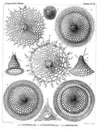 | Keywords: Radiolaria (Challenger) Plate 058.jpg follows <table> <tr> <td style text-align center; vertical-align top; colspan 3 >Plate 58 Tripocyrtida Sethocyrtida Phormocyrtida et Theocyrtida </td> </tr> <tr> <td style font-size 85 ; text-align right; vertical-align top; colspan 3 >Diam </td> </tr> <tr> <td style vertical-align top; >Fig 1 Cecryphalium sestrodiscus n sp </td> <td style vertical-align bottom; >×</td> <td style text-align right; vertical-align bottom; >400</td> </tr> <tr> <td style font-size 85 ; padding-left 3em; text-indent -1em; vertical-align top; >Apical view </td> </tr> <tr> <td style vertical-align top; >Fig 2 Cecryphalium lamprodiscus n sp </td> <td style vertical-align bottom; >×</td> <td style text-align right; vertical-align bottom; >400</td> </tr> <tr> <td style font-size 85 ; padding-left 3em; text-indent -1em; vertical-align top; >Apical view </td> </tr> <tr> <td style vertical-align top; >Fig 3 Clathrocyclas coscinodiscus n sp </td> <td style vertical-align bottom; >×</td> <td style text-align right; vertical-align bottom; >400</td> </tr> <tr> <td style font-size 85 ; padding-left 3em; text-indent -1em; vertical-align top; >Apical view </td> </tr> <tr> <td style vertical-align top; >Fig 4 Clathrocyclas coscinodiscus n sp </td> <td style vertical-align bottom; >×</td> <td style text-align right; vertical-align bottom; >700</td> </tr> <tr> <td style font-size 85 ; padding-left 3em; text-indent -1em; vertical-align top; >The cephalis alone with the two horns </td> </tr> <tr> <td style vertical-align top; >Fig 5 Clathrocyclas semeles n sp </td> <td style vertical-align bottom; >×</td> <td style text-align right; vertical-align bottom; >400</td> </tr> <tr> <td style font-size 85 ; padding-left 3em; text-indent -1em; vertical-align top; >Lateral view </td> </tr> <tr> <td style vertical-align top; >Fig 6 Sethoconus capreolus n sp </td> <td style vertical-align bottom; >×</td> <td style text-align right; vertical-align bottom; >400</td> </tr> <tr> <td style font-size 85 ; padding-left 3em; text-indent -1em; vertical-align top; >Lateral view </td> </tr> <tr> <td style vertical-align top; >Fig 7 Lampromitra quadricuspis n sp </td> <td style vertical-align bottom; >×</td> <td style text-align right; vertical-align bottom; >400</td> </tr> <tr> <td style font-size 85 ; padding-left 3em; text-indent -1em; vertical-align top; >Apical view </td> </tr> <tr> <td style vertical-align top; >Fig 8 Lampromitra furcata n sp </td> <td style vertical-align bottom; >×</td> <td style text-align right; vertical-align bottom; >400</td> </tr> <tr> <td style font-size 85 ; padding-left 3em; text-indent -1em; vertical-align top; >The collar septum after removal of the cephalis </td> </tr> <tr> <td style vertical-align top; >Fig 9 Lampromitra dendrocorona n sp </td> <td style vertical-align bottom; >×</td> <td style text-align right; vertical-align bottom; >400</td> </tr> <tr> <td style font-size 85 ; padding-left 3em; text-indent -1em; vertical-align top; >Apical view </td> </tr> </table> https //archive org/details/reportonradiolar00haecrich 1887 Ernst Haeckel 1834-1919 ; engravings by Adolf Giltsch 1852-1911 PD-old-auto-1923 1919 Report on the Radiolaria |