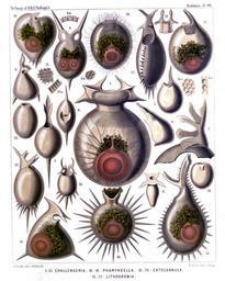 | Keywords: Radiolaria (Challenger) Plate 099.jpg follows <table> <tr> <td style text-align center; vertical-align top; colspan 3 >Plate 99 Challengerida </td> </tr> <tr> <td style font-size 85 ; text-align right; vertical-align top; colspan 3 >Diam </td> </tr> <tr> <td style font-size 85 ; padding-left 3em; text-indent -1em; vertical-align top; > The central capsule is coloured red and the phæodium green in Figs 1 6 10 14-17 20 </td> </tr> <tr> <td style vertical-align top; >Fig 1 Challengeria murrayi n sp </td> <td style vertical-align bottom; >×</td> <td style text-align right; vertical-align bottom; >50</td> </tr> <tr> <td style font-size 85 ; padding-left 3em; text-indent -1em; vertical-align top; >From the dorsal side Numerous streams of sarcode arise from the central capsule and pierce the calymma inside the shell </td> </tr> <tr> <td style vertical-align top; >Fig 2 Challengeria wildi n sp </td> <td style vertical-align bottom; >×</td> <td style text-align right; vertical-align bottom; >400</td> </tr> <tr> <td style font-size 85 ; padding-left 3em; text-indent -1em; vertical-align top; >The peristome from the left side </td> </tr> <tr> <td style vertical-align top; >Fig 3 Challengeria bromleyi n sp </td> <td style vertical-align bottom; >×</td> <td style text-align right; vertical-align bottom; >400</td> </tr> <tr> <td style font-size 85 ; padding-left 3em; text-indent -1em; vertical-align top; >From the dorsal side </td> </tr> <tr> <td style vertical-align top; >Fig 4 Challengeria sloggettii John Murray</td> <td style vertical-align bottom; >×</td> <td style text-align right; vertical-align bottom; >150</td> </tr> <tr> <td style font-size 85 ; padding-left 3em; text-indent -1em; vertical-align top; >The ventral corner broken off From the left side </td> </tr> <tr> <td style font-size 85 ; padding-left 3em; text-indent -1em; vertical-align top; >Fig 4a Vertical section through the shell-wall </td> </tr> <tr> <td style vertical-align top; >Fig 5 Challengeria tritonis n sp </td> <td style vertical-align bottom; >×</td> <td style text-align right; vertical-align bottom; >150</td> </tr> <tr> <td style vertical-align top; >Fig 6 Challengeron diodon n sp </td> <td style vertical-align bottom; >×</td> <td style text-align right; vertical-align bottom; >400</td> </tr> <tr> <td style font-size 85 ; padding-left 3em; text-indent -1em; vertical-align top; >From the dorsal side The shell contains two central capsules </td> </tr> <tr> <td style vertical-align top; >Fig 7 Challengeron pearceyi n sp </td> <td style vertical-align bottom; >×</td> <td style text-align right; vertical-align bottom; >300</td> </tr> <tr> <td style font-size 85 ; padding-left 3em; text-indent -1em; vertical-align top; >From the dorsal side </td> </tr> <tr> <td style vertical-align top; >Fig 8 Challengeron richardsii n sp </td> <td style vertical-align bottom; >×</td> <td style text-align right; vertical-align bottom; >100</td> </tr> <tr> <td style font-size 85 ; padding-left 3em; text-indent -1em; vertical-align top; >From the oral margin</td> </tr> <tr> <td style vertical-align top; >Fig 9 Challengeron fergusoni n sp </td> <td style vertical-align bottom; >×</td> <td style text-align right; vertical-align bottom; >100</td> </tr> <tr> <td style font-size 85 ; padding-left 3em; text-indent -1em; vertical-align top; >From the right side </td> </tr> <tr> <td style vertical-align top; >Fig 10 Challengeron triangulum n sp </td> <td style vertical-align bottom; >×</td> <td style text-align right; vertical-align bottom; >200</td> </tr> <tr> <td style font-size 85 ; padding-left 3em; text-indent -1em; vertical-align top; >From the right side </td> </tr> <tr> <td style vertical-align top; >Fig 11 Challengeron crosbiei n sp </td> <td style vertical-align bottom; >×</td> <td style text-align right; vertical-align bottom; >300</td> </tr> <tr> <td style font-size 85 ; padding-left 3em; text-indent -1em; vertical-align top; >From the ventral side </td> </tr> <tr> <td style vertical-align top; >Fig 12 Challengeron buchanani n sp </td> <td style vertical-align bottom; >×</td> <td style text-align right; vertical-align bottom; >300</td> </tr> <tr> <td style font-size 85 ; padding-left 3em; text-indent -1em; vertical-align top; >From the right side </td> </tr> <tr> <td style vertical-align top; >Fig 13 Challengeron willemoesii n sp </td> <td style vertical-align bottom; >×</td> <td style text-align right; vertical-align bottom; >400</td> </tr> <tr> <td style font-size 85 ; padding-left 3em; text-indent -1em; vertical-align top; >From the ventral side </td> </tr> <tr> <td style vertical-align top; >Fig 14 Challengeron moseleyi n sp </td> <td style vertical-align bottom; >×</td> <td style text-align right; vertical-align bottom; >300</td> </tr> <tr> <td style font-size 85 ; padding-left 3em; text-indent -1em; vertical-align top; >From the right side </td> </tr> <tr> <td style vertical-align top; >Fig 15 Challengeron wyvillei n sp </td> <td style vertical-align bottom; >×</td> <td style text-align right; vertical-align bottom; >300</td> </tr> <tr> <td style font-size 85 ; padding-left 3em; text-indent -1em; vertical-align top; >From the left side </td> </tr> <tr> <td style vertical-align top; >Fig 16 Porcupinia cordiformis n sp </td> <td style vertical-align bottom; >×</td> <td style text-align right; vertical-align bottom; >200</td> </tr> <tr> <td style font-size 85 ; padding-left 3em; text-indent -1em; vertical-align top; >From the right side </td> </tr> <tr> <td style vertical-align top; >Fig 17 Pharyngella gastræa n sp </td> <td style vertical-align bottom; >×</td> <td style text-align right; vertical-align bottom; >150</td> </tr> <tr> <td style vertical-align top; >Fig 18 Pharyngella gastrula n sp </td> <td style vertical-align bottom; >×</td> <td style text-align right; vertical-align bottom; >150</td> </tr> <tr> <td style vertical-align top; >Fig 19 Entocannula infundibulum n sp </td> <td style vertical-align b