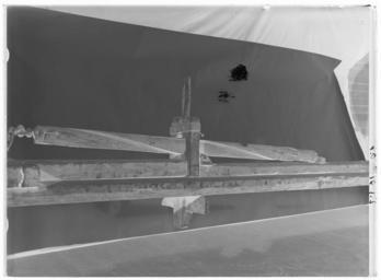 | Keywords: Räffelbänk, 1700-talets slut, från smedja i Sundets by, Råneå - Livrustkammaren - 18125-negative.tif Bänk av obehandlad grovhyvlad furu l ca 4000 mm b ca 300 mm sammansatt av två bräder b 150 mm tjocklek 60 mm Två intappade utåtställda benpar h 450 och 510 mm det bakre kraftigare och försett med tvärslå och stödbräda på bänkens undersida Ca 100 mm från framänden fastspikat en uppstående träplatta med konturerad överkant och skålat stöd för bösspipan <br/><br/>Ca 500 mm därbakom fästanordning för pipan bestående av stock h 350 mm inkl tapp b 150 mm tjocklek 100 mm fäst med tapp genom bänken På stockens översida en stålbygel för fästskruv för pipan ringformigt huvud Under skruven på stocken en stålplatta med stopplist baktill och vid vardera sidan ett runt hål för styrpinnar plattans framände nedåtböjd över stockens framsida <br/><br/>Från fästanordningen löper på bänkens ovansida en bräda b 115 mm fäst med kraftiga stålspikar Ca 1500 mm bakom pipfästet en styranordning för räffelstocken bestående av en träplatta h 350 mm inkl tapp b 140 mm tjocklek 50 mm likaså fäst med tapp genom bänken I plattan ett runt hål d 80 mm med snedställd styrlist nertill styrningen upptill genom en grovskuren urtagbar träpinne l 270 mm Plattan spräckt upptill på framsidan och förstärkt med ett ca 30 mm brett stålband runtom <br/><br/>Brädan på bänkens ovansida fortsätter därbakom ca 700 mm och är baktill intappad i fästanordningen förspelet en U-formig konstruktion bestående framtill av en på bänkens ovansida fastspikad bräda l 380mm b 120 mm tjocklek 65 mm samt däri och i bänkens kanter fastspikade stående bakåt breddade bräder l 910 mm b 130-220 mm tjocklek 65 mm baktill på dessa stålskodda lager för spelvalsen <br/><br/>Spel bestående av vals l 1000 mm d 210 mm med två kraftiga cylindriska ytterdelar l ca 250 mm vardera med två genomgående hål för käppar d ca 50 mm Balusterformigt mittparti med av smörjmedelsvärtade ytterdelar från lagren på bänken På mittpartiet fäst en kätting l ca 1650 mm länkstorlek 50x34 mm d ca 11 mm Kättingen lindas upp på valsens mittparti som är kraftigt skadat och förstärkt genom lindning med hampsnöre Till spelet hör tre urspr fyra käppar l ca 1070 mm <br/><br/>Räffelstock l 1550 mm trädelens l ca 1350 mm med två spiralvridna räfflor b ca 15 mm drall 1 varv I ena änden ett ringformigt fäste för kättingen fäst med nit och stålband runt stocken I den andra änden fäste för räffelstålen i form av stålcylinder l 143 mm fäst med två stålband l ca 130 mm b 25 mm och två kraftiga spikar i ytterdelen 15 runda hål åtta i en yttre ring sju i en inre d ca 10 mm Mitt i cylindern fäst en rörlig u-formig bandbygel med ett hål i vardera skänkeln <br/><br/>Stocken märkt med ett inskuret W original caption end other date century 18 fir - steel size mm 4000 300 ca LRK Fredrik William Wikström bössmed Petter William Wikström bössmed W Fredrik William Wikström W Fredrik William Wikström place of origin original filename LN_B07162_010042 46233 inventory number LRK 9635 18125 CC0 Räffelbänk 1700-talets slut från smedja i Sundets by Råneå - Livrustkammaren - 18125 tif <gallery caption Different images of same object > File Räffelbänk 1700-talets slut från smedja i Sundets by Råneå - Livrustkammaren - 26687 tif </gallery> |