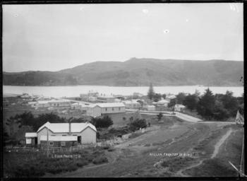 | Keywords: blackandwhite monochrome outdoor photo border black and white Raglan, from the top of Bow Street, 1 July, 1910. Photograph taken by the Gilmour Brothers. The business premises of the Gilmour Brothers and Moon & Cameron, and also the Harbour View Hotel are all visible left centre. Inscriptions: Inscribed - Photographer's title on negative -bottom left: G Bros Protd 1.7.10bottom right: Raglan From top of Bow St 111. Quantity: 1 b&w original negative(s). Physical Description: Dry plate glass negative 6.5 x 4.75 inches Gilmour Brothers (Firm). Raglan - Photograph taken by Gilmour Brothers. Price, William Archer, 1866-1948 :Collection of post card negatives. Ref: 1/2-001024-G. Alexander Turnbull Library, Wellington, New Zealand. natlib.govt.nz/records/22697172 Raglan, from the top of Bow Street, 1 July, 1910. Photograph taken by the Gilmour Brothers. The business premises of the Gilmour Brothers and Moon & Cameron, and also the Harbour View Hotel are all visible left centre. Inscriptions: Inscribed - Photographer's title on negative -bottom left: G Bros Protd 1.7.10bottom right: Raglan From top of Bow St 111. Quantity: 1 b&w original negative(s). Physical Description: Dry plate glass negative 6.5 x 4.75 inches Gilmour Brothers (Firm). Raglan - Photograph taken by Gilmour Brothers. Price, William Archer, 1866-1948 :Collection of post card negatives. Ref: 1/2-001024-G. Alexander Turnbull Library, Wellington, New Zealand. natlib.govt.nz/records/22697172 |