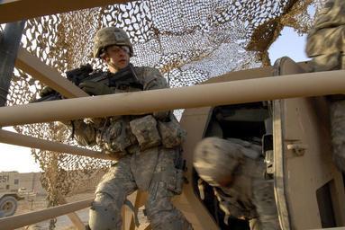 | Keywords: Raider Bayonet Training Exercise DVIDS118502.jpg en Army Pfc Bob Ward assigned to 3rd Platoon Delta Company attached to Echo Company 4th Infantry Division participates in the Hummvee Egress Assistance Training as part of the Raider Bayonet training exercise at Forward Operating Base Falcon 2008-09-22 Petty Officer 2nd Class Joan Kretschmer https //www dvidshub net/image/118502 080922-N-+++++-101 2008-09-27 15 41 FOWARD OPERATING BASE FALCON IQ PD-USGov-Military-Navy Forward Operating Base Falcon Images from DoD uploaded by Fæ |