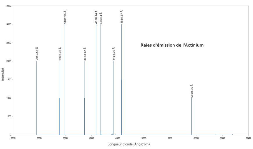 | Keywords: Raies Actinium.png fr Raies d'émission de l'Actinium Créée par mes soins avec OpenOffice org Calc et The Gimp d'après http //www hbcpnetbase com/ Handbook of Chemistry Physics Epop Check categories 2009 May 2 fr wikipedia Actinium Actinium 1 Actinium |