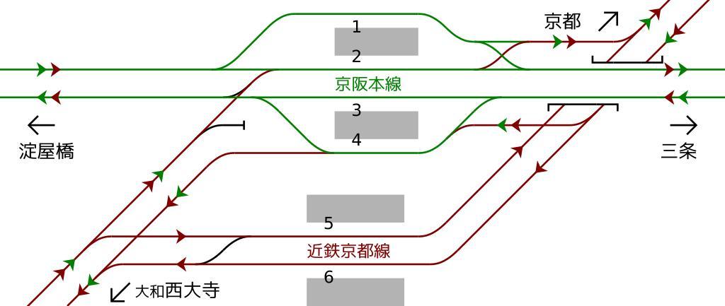 | Keywords: Rail Track diagram of Tambabashi Station 1967 03 ja.svg Tambabashi Station for Japanese in Fushimi-ku Kyoto Japan <br /> Railway track Line name colored line <span style color 008000 > green </span> Keihan Line route <span style color 800000 > maroon </span> Kintetsu Kyoto Line route Station n Platform Number Reference material Kintetsu Corporation 100NEN NO AYUMI The corporation history of 100 years Japanese Page 292 figure 6-6 京都市伏見区にある丹波橋駅 京阪と近鉄の共同使用駅当時の鉄道配線図・日 語版(1967年 昭和42年 3 ) 乗り入れ路線名 <span style color 008000 > </span> 京阪 線 <span style color 800000 > </span> 近鉄京都線 駅 n プラットホーム番号 参 文献: 近畿日 鉄道編集 近畿日 鉄道 100年のあゆみ - 1910~2010 292頁図6-6 丹波橋駅の配線変更(昭和42 43年) 2010年 凡例は駅配線図テンプレートを参照 Plan de voies gare de Tambabashi historique mars 1967 Réseau Keihan vert et Kintetsu Corporation Bordeaux Fushimi-ku Kyoto Japon Created with Text Editor Tawashi2006 created from icons in Category Rail_tracks_map_template 2013-05-19 Tawashi2006 with http //kiritachinoboru tripod com/pdv2svg_en html pdv2svg Tawashi2006 300pxen validSVG translation possible Rail track diagrams of Kintetsu Corporation train stations Rail track diagrams of Keihan Electric Railway train stations |