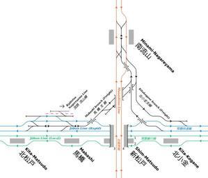| Keywords: Rail Tracks map around JR-E Shim-Matsudo Station.svg JR-East Shim-Matsudo Station in Matsudo Chiba Japan <br />Reference material Masashi Takahashi Junction of Tokyo Outer Loop like Line Japanese Figure 6-A 6-B Shim-Matsudo Junction DENKISHA KENKYUKAI THE RAILWAY PICTORIAL Vol 808 page 53 54 2008-09 åƒè‘‰ç Œæ ¾æˆ¸å¸‚ã«ã‚ã‚‹JRæ ±æ—¥æ ¬ æ–°æ ¾æˆ¸é§…å‘¨è¾ºã®é‰„é“é…線略図<br /> å‚è ƒæ–‡çŒ®ï¼šé«˜æ©‹æ”¿å£«ã Œæ ±äº¬å¤–ç’°çŠ¶ç·šã‚¸ãƒ£ãƒ³ã‚¯ã‚·ãƒ§ãƒ³ã 図6ï¼AãŠã‚ˆã³å›³6ï¼B ã Œæ–°æ ¾æˆ¸ã‚¸ãƒ£ãƒ³ã‚¯ã‚·ãƒ§ãƒ³ã é›»æ°—è»Šç ”ç©¶ä¼šã 㠎鉄é“ピクトリアルã ã 第58å·»9å· é šå·»ç¬¬808å· 2008å¹´9æ ˆå·ã 53・54é 凡例ã¯é§…é…線図テンプレートをå‚ç…§ Plan de voies Tawashi2006 created from icons in Category Rail_tracks_map_template 2010-01-17 Tawashi2006 with http //kiritachinoboru tripod com/pdv2svg_en html pdv2svg Rail track diagrams of JR East train stations |