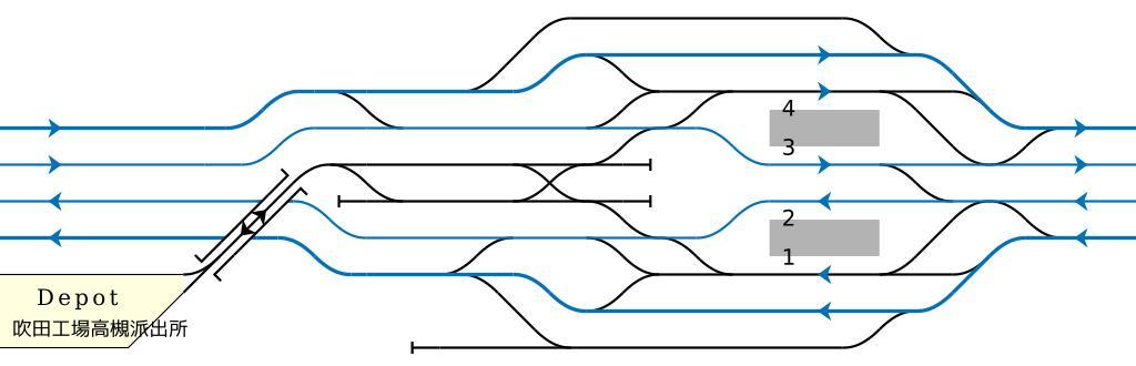 | Keywords: Rail Tracks map JR-W Takatsuki Station.svg JR-West Takatsuki Station in Takatsuki Osaka Japan <br /> Reference material <br /> Keisuke SODA special issue - JR Group's Rail yard for Commuter rail in National Capital Region and Kansai region KOYUSHA Co Ltd Japan Railfan Magazine Tetsudō Fan Japanese Magazine Vol 46-1 No 537 page 65 Figure 83 2006-01 <br /> http //www jr-odekake net/eki/premises php id 0610122 WEST JAPAN RAILWAY official homepage ODEKAKE net - Takatsuki Station Japanese 大阪 高槻市にあるJR西日 高槻駅周辺の鉄道配線略図<br /> 参 文献:<br /> 祖田 介 図83 高槻駅付近の配線略図 交友社 鉄道ファン 特集 短絡線ミステリー8 - 首都 ・関西 JR 勤電車の車両基 第46巻1号( 巻第537号) 2006年1 号 65頁 <br /> http //www jr-odekake net/eki/premises php id 0610122 JR西日 公式ホームページ JRおでかけネット - 高槻駅 - 構内図<br />凡例は駅配線図テンプレートを参照 Plan de voies de gare de Takatsuki Tōkaidō Main Line Takatsuki Ōsaka Japon Created with Text Editor Tawashi2006 created from icons in Category Rail_tracks_map_template 2011-01-16 Tawashi2006 with http //kiritachinoboru tripod com/pdv2svg_en html pdv2svg Tawashi2006 nothing validSVG translation possible Rail track diagrams of JR West train stations Takatsuki Station Osaka |