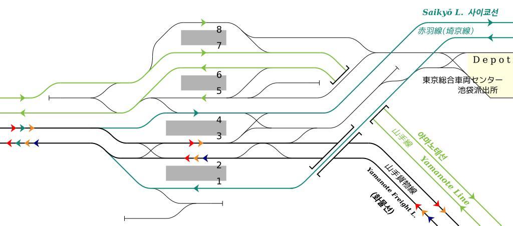 | Keywords: Rail Tracks map JR-E Ikebukuro Station.svg Rail tracks map JR-E Ikebukuro Station in Toshima Tokyo Japan <br /> Reference material <br /> Keisuke SODA Special issue - The 100th Anniversary of Yamanote Line EMU KOYUSHA Co Ltd Japan Railfan Magazine Tetsudō Fan Japanese Magazine Vol 50-2 No 586 page 40 Figure 23 2010-02 京都豊島区にあるJR 日 池袋駅 鉄道配線略図 <br /> 参 文献:<br /> 祖田 介 特集 山手線電車100周年 交友社 鉄道ファン 第50巻2号( 巻第586号) 2010年2 号 40頁 図23 池袋駅の配線 凡例は駅配線図テンプレートを参照 Plan de voies de gare de Ikebukuro JR-Est Toshima Tōkyō Japon Created with Text Editor Tawashi2006 created from icons in Category Rail_tracks_map_template 2011-03-03 Tawashi2006 with http //kiritachinoboru tripod com/pdv2svg_en html pdv2svg Tawashi2006 validSVG translation possible Ikebukuro Station Rail track diagrams of JR East train stations |