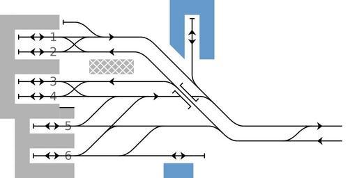 | Keywords: Rail Tracks map Kintetsu Uehonmachi Station III.svg Kintetsu Ōsaka Uehommachi Station in Tennōji-ku Osaka Japan III 1930-10 <br /> Station <span style color gray >n</span> track Number White crosshatch arrival platform <span style color 6699cc >Blue polygon</span> freight platform <br /> Reference material <br /> Kintetsu Corporation 50NEN NO AYUMI The corporation history of 50 years Japanese Page 84 - 85 <br /> Kintetsu Corporation 100NEN NO AYUMI The corporation history of 100 years Japanese Page 154 figure 3-6 大阪市天王寺区にある近畿日 鉄道大阪上 町駅の歴代鉄道配線略図- の3(1930年 昭和5年 10 ) <br /> 参 文献:<br /> 近畿日 鉄道編集 近畿日 鉄道 50年のあゆみ 84・85頁 上 町駅変遷図 1960年 <br /> 近畿日 鉄道編集 近畿日 鉄道 100年のあゆみ - 1910~2010 154頁図3-6 上 町駅配線の変遷(昭和5~14年) <br /> 凡例は駅配線図テンプレートを参照 Plan de voies gare de Uehonmachi historique III - comme d'octobre 1930 Réseau Kintetsu Tennoji-ku Osaka Japon Created with Text Editor Tawashi2006 created from icons in Category Rail_tracks_map_template 2011-03-03 Tawashi2006 with http //kiritachinoboru tripod com/pdv2svg_en html pdv2svg Tawashi2006 validSVG translation possible Historical Rail tracks diagram of Uehonmachi Station |