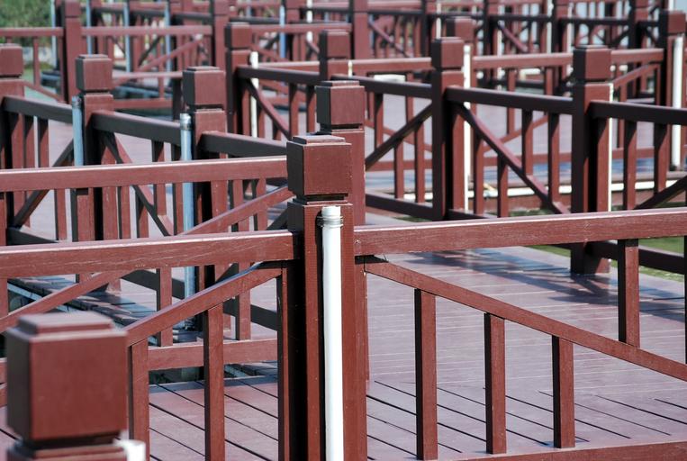 Keywords: railing maze wood structure walkway outdoors pathway wooden construction handrail rails rail