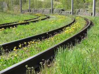 Keywords: railroad track track seemed rail traffic track bed landscape railway rails railway curve meadow flowers spring nature