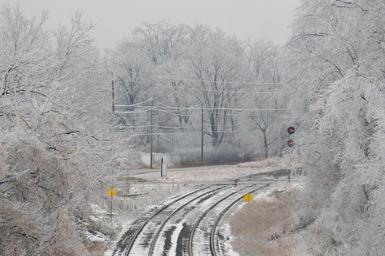 Keywords: railroad tracks crossing signal winter ice season frozen
