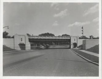 | Keywords: kalamazoo public library michigan history photography riverview drive avenue railroad underpass bridge outdoor photo border Railroad underpass at East Michigan and Riverview Drive, 1937-1941. Brick road is visible in foreground. Train signals visible on top of the bridge. KPL catalogue number P-805. Railroad underpass at East Michigan and Riverview Drive, 1937-1941. Brick road is visible in foreground. Train signals visible on top of the bridge. KPL catalogue number P-805. | ||||