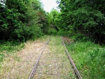Keywords: rails overgrown railroad tracks track end nature train track transportation transport rail transit public railway station tracks railroad woods forest