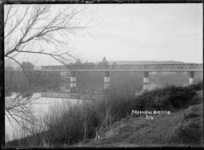 | Keywords: blackandwhite monochrome outdoor photo border black and white Railway bridge over the Whanganui River at Aramoho, circa 1910s. Photograph taken by William A. Price. Inscriptions: Inscribed - Photographer's title on negative -bottom right: Aramoho Bridge. [No.] 514. Quantity: 1 b&w original negative(s). Physical Description: Dry plate glass negative Railway bridge over the Whanganui River at Aramoho. Price, William Archer, 1866-1948 :Collection of post card negatives. Ref: 1/2-001010-G. Alexander Turnbull Library, Wellington, New Zealand. natlib.govt.nz/records/22888853 Railway bridge over the Whanganui River at Aramoho, circa 1910s. Photograph taken by William A. Price. Inscriptions: Inscribed - Photographer's title on negative -bottom right: Aramoho Bridge. [No.] 514. Quantity: 1 b&w original negative(s). Physical Description: Dry plate glass negative Railway bridge over the Whanganui River at Aramoho. Price, William Archer, 1866-1948 :Collection of post card negatives. Ref: 1/2-001010-G. Alexander Turnbull Library, Wellington, New Zealand. natlib.govt.nz/records/22888853 |