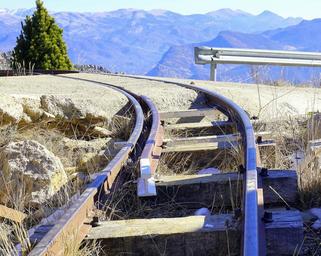 Keywords: railway equipment rails infrastructure train tracks steel transport via iron level crossing mining area