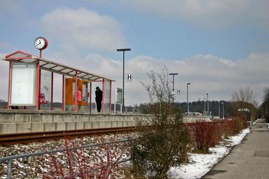 Keywords: railway station stop train sidewalk transport traffic passenger wait platform track railway tracks schönbuch web baden württemberg germany southern germany public personennahverkehr public means of transport