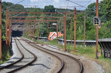 Keywords: railway track transportation rail railroad transport way line train tracks railroad tracks infrastructure outdoor electric signal denmark travel network system scandanavia overheads electrification