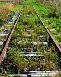 Keywords: railway tracks track seemed track bed railroad tracks railway gravel metal away threshold shut down rail traffic train old stainless neglected old railroad tracks wooden sleepers overgrown weed vegetation railway sleepers