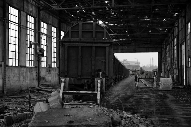 Keywords: railway train seemed broken stainless hall dilapidated collapse black and white mood old lapsed forget