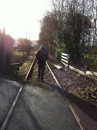 Keywords: railway train track man walking alone depressed