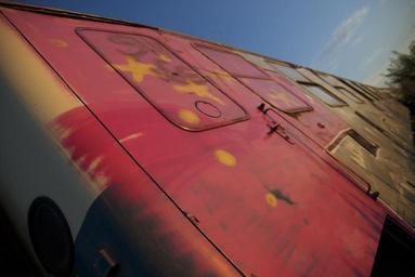 Keywords: railway wagon old color siding gleise red train art painted graffiti rusted rots sprayer creativity pollution evening sun