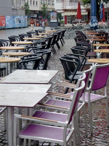 Keywords: rain chairs street cafe seat cafe out moist gastronomy empty chairs rainstorm trueb wet table chair