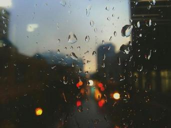 Keywords: rain drops rain window sad dark night traffic lights car lights raining
