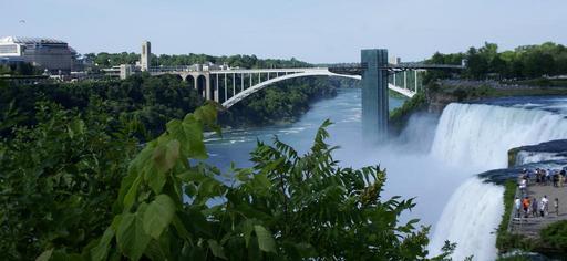 | Keywords: Rainbow Bridge and Observation Tower.jpg en A photograph of the Rainbow Bridge and the Prospect Point Observation Tower The American Falls lie in the foreground The photograph was taken on Luna Island 2012-06-15 own Buffalutheran cc-zero Uploaded with UploadWizard Rainbow Bridge Niagara Falls American Falls Niagara Falls State Park Prospect Point Park observation tower | ||||