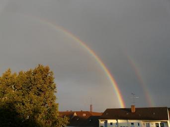 | Keywords: rainbow half transient stop ends fade double rainbow mirroring refraction double two phenomenon rain sunshine sky nature spectrum colorful natural phenomenon rainbow colors ray natural spectacle of course spectacular clouds half circle achieve homes house roof antenna tree miracle secondary rainbow |