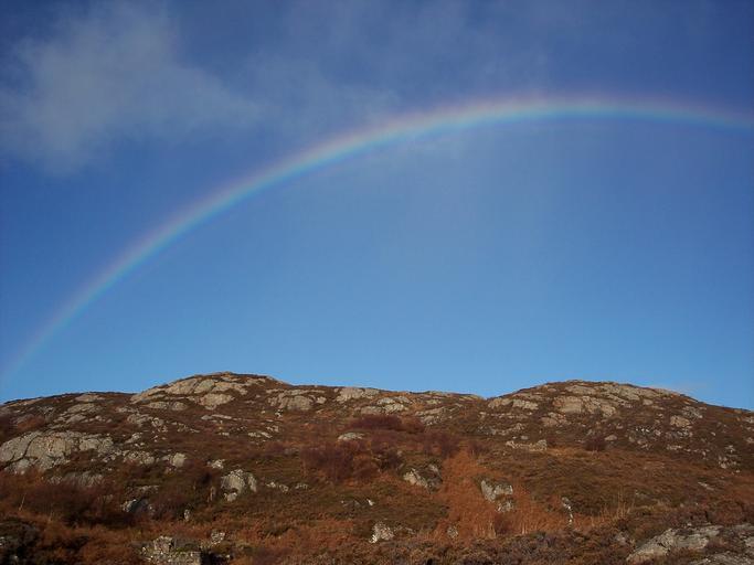 Keywords: rainbow hills sky blue countryside rural scotland south rona weather arc horizon nature scenic idyllic