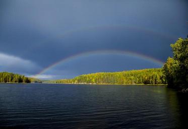 Keywords: rainbow rain lake sunshine summer water sky lake in finland