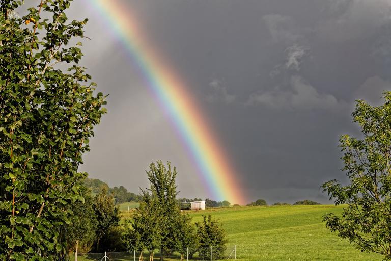 Keywords: rainbow sky clouds mood nature landscape natural spectacle natural phenomenon farbenspiel refraction