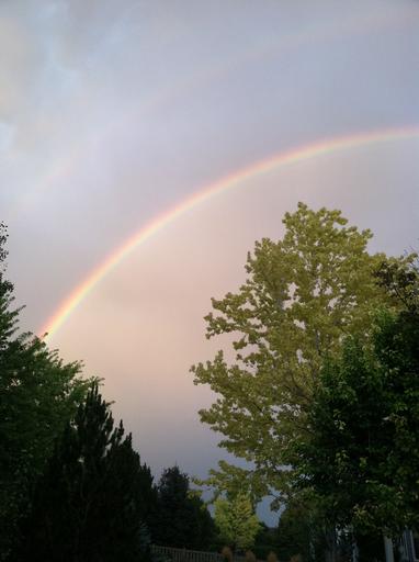 Keywords: rainbow sky trees rainbow sky landscape summer light green cloud outdoor hope