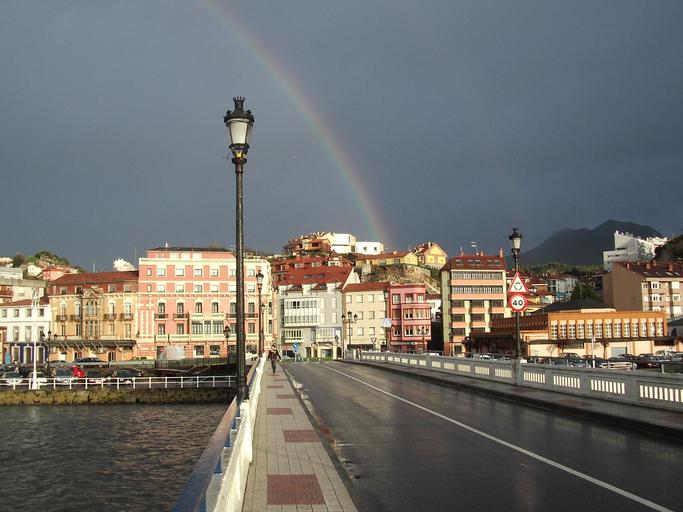 Keywords: rainbow street lamp sky city sunset landscape ribadesella asturias spain tourism bridge sella river architecture charming houses