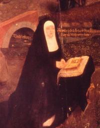 | Keywords: Rainha D. Leonor rezando no seu Livro de Horas.jpg en Queen Leonor of Portugal praying in her marvellous Book of Hours on a flemish painting of Jerusalem offered by her cousin emperor Maximilian I pt A Rainha D Leonor rezando no seu magnífico Livro de Horas pintada sobre o quadro flamengo Panorama de Jerusalém oferecido por seu primo o imperador Maximiliano I own Portuguez 2003 Portugal Lisbon Xabregas Madre de Deus Convent Religious art Royal Family of Portugal flemish art Leonor of Viseu in paintings Flemish paintings in Portugal |
