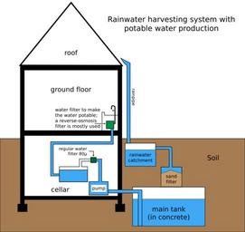 | Keywords: Rainwater harvesting system.svg A hand-drawn picture of a rainwater harvesting system in which potable water production trough filtering is imbedded It is based on a drawing from the book Duurzaam en Gezond Bouwen en Wonen by Hugo Vanderstadt Rainwater_harvesting_system JPG 2010-03-22 14 47 UTC Rainwater_harvesting_system JPG KVDP talk derivative work Fred the Oyster <span class signature-talk >talk</span> Adobe Illustrator Vectorised Fred the Oyster Rainwater_harvesting_system JPG Rainwater harvesting Images created by Fred the Oyster |