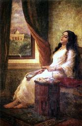 | Keywords: Raja Ravi Varma, In Contemplation.jpg Artwork Creator Raja Ravi Varma en In Contemplation en A lady in deep thoughts ചിന്തയിൽ മുഴുകി ഇരിക്കുന്ന വനിത Oil on canvas Kowdiar Palace Thiruvananthapuram Kerala വി കവടിയാർ കൊട്ടാരം തിരുവനന്തപുരം കേരളം object history credit line accession number Source of this digital version is not stated by uploader However copies available http //www cyberkerala com/rajaravivarma/rrvhtm21 htm here and http //www museumsyndicate com/item php item 25481 here PD-old-100 Thinking in art Portraits of women of India by Raja Ravi Varma Art of India in the Kowdiar Palace Anjanibai Malpekar Contemplation |