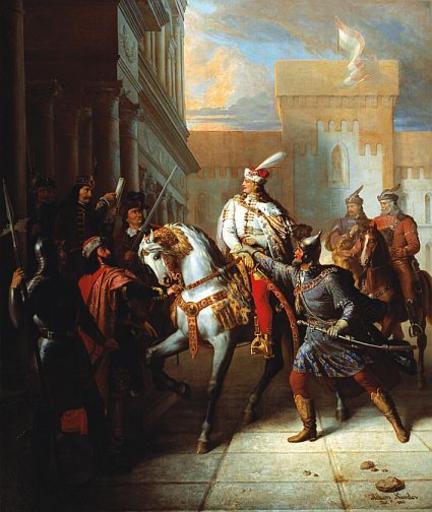 | Keywords: Rákosi Arrestation of Ferenc Rákóczi II 1884.jpg Artwork Creator Nándor Rákosi 1884 Oil on canvas Size cm 172 200 Private collection object history exhibition history credit line bottom right Rákosi Nándor Pest 1866 accession number http //axioart com/ axioart com http //axioart com/index php set_lang en op live_item id 136492 Info http //axioart com/images/live_images/original/523/72 jpg Pic PD-old-100 Nándor Rákosi 1884 oil on canvas paintings Paintings of Francis II Rákóczi Ermine clothing in art Ermine headgear in art |