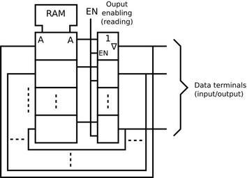 Keywords: RAM circuit diagram.svg en RAM circuit diagram es Diagrama del circuito de una RAM con salidas triestado own Dizquierdol Made with Dia v0 97 1 Cc-zero Digital circuit diagrams