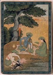 | Keywords: Rama, with Sita and Lakshmana in the forest (6124522721).jpg en Series Title Rama's Journey Suite Name Ramayana Creation Date ca 1790 Creation Place/Subject India State-Province Himachal Pradesh Court Kangra School Pahari Media Support Opaque watercolor and gold on paper Display Dimensions 7 15/16 in x 5 13/32 in 20 2 cm x 13 7 cm Credit Line Edwin Binney 3rd Collection Accession Number 1990 1280 Collection <a href http //www sdmart org/art/our-collection/asian-art rel nofollow >The San Diego Museum of Art</a> Label Copy VISIONS OF THE GREAT GODDESS September 2004 In the epic Ramayana 500-300 B C King Rama an avatar of Vishnu must undergo the hardships of exile for thirteen years with his wife Sita and brother Lakshmana The text describes peaceful days in the forest during which they roam about in search of food and chance upon sages and ascetics with whom they engage in conversation In this folio Rama's wife Sita-an incarnation of the great goddess-personifies the virtues of an ideal wife Wearing the bark-and-leaf clothing of ascetics she performs her usual domestic tasks with patience and love The trailing vine with its delicate white flowers is a metaphor of her affection for her husband and a convention of Kangra painting of this period 2011-09-06 14 08 59 https //www flickr com/photos/thesandiegomuseumofartcollection/6124522721/ Flickr en thesandiegomuseumofartcollection PD-old-100 Files from the San Diego Museum of Art to be checked |