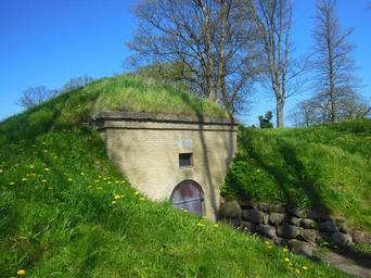 Keywords: rampart military gunpowder house built in the rampart grass roof camouflaged security nyborg funen