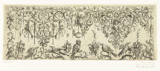 | Keywords: Randdecoratie met bladranken en drie zeedieren.jpeg accession number https //hdl handle net/10934/RM0001 COLLECT 451208; RP-P-OB-6342 Creator Henry Le Roy Le Roy Henry 1579 1651 printmaker Tegenzijdige kopie naar de bladen 6 en 7 uit de serie Somige Eenvoldige Vruchten en Spitsen Midden onder zit een uil daarboven hangt een krab Uit serie bladen waarop telkens twee motieven naast elkaar te zien zijn aangevuld met vogels insecten bloempotten en soms een ornamentele rand met ranken en dieren ; Iconclasscode 48A986; Iconclasscode 25F34; Iconclasscode 25F716 CRAB ; print; ornamentprent mm 78 mm 211 exhibition history Institution Rijksmuseum paper; engraving object history object type print; ornamentprent PD-old-100 place of creation place of discovery https //www rijksmuseum nl Randdecoratie met bladranken en drie zeedieren Uploaded with GWToolset Randdecoratie met bladranken en drie zeedieren http //lh4 ggpht com/OdBV06RH47XdZPrIUParFBTK6Q8V01AQhq6LKqacn-MewwESId0EVxTYFkwuwpw4uQX-XPrGvAGaqVgIlShnRpy-ow s0 Prints in the Rijksmuseum Amsterdam Unidentified birds in the collection of the Rijksmuseum Amsterdam Birds in art Public domain GWToolset Batch UploadBirdwatching Rijksmuseum |