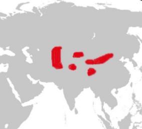 Keywords: Range Map Cervus affinis.png Range Map of Cervus affinis Central Asian Red Deer adapted and modified from blank map on Commons retrieved here own date MONGO Unidentified Cervus