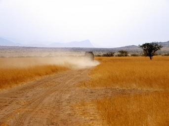 Keywords: range rover vehicle dust cloud grass yellow grass dry dry grass dry track desert namibia namibian desert dirt dirt road bare barren dusty dusty track