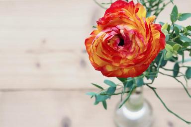 Keywords: ranunculus flower blossom bloom orange petals spring flower spring schnittblume close text freedom negative space