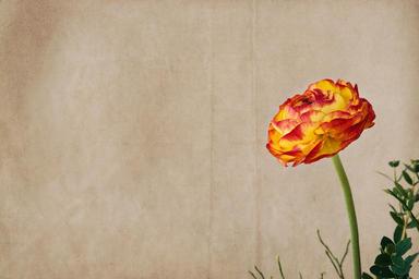 Keywords: ranunculus flower blossom bloom orange red yellow plant ranunculus flower spring flower schnittblume petals close text freedom negative space copy space