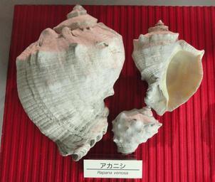 | Keywords: Rapana venosa - Osaka Museum of Natural History - DSC07799.JPG en Exhibit in the Osaka Museum of Natural History Osaka Japan Photography was permitted in the museum without restriction Daderot 2012-08-27 22 21 09 Daderot cc0 cc0 Shells in the Osaka Museum of Natural History Rapana venosa shells |